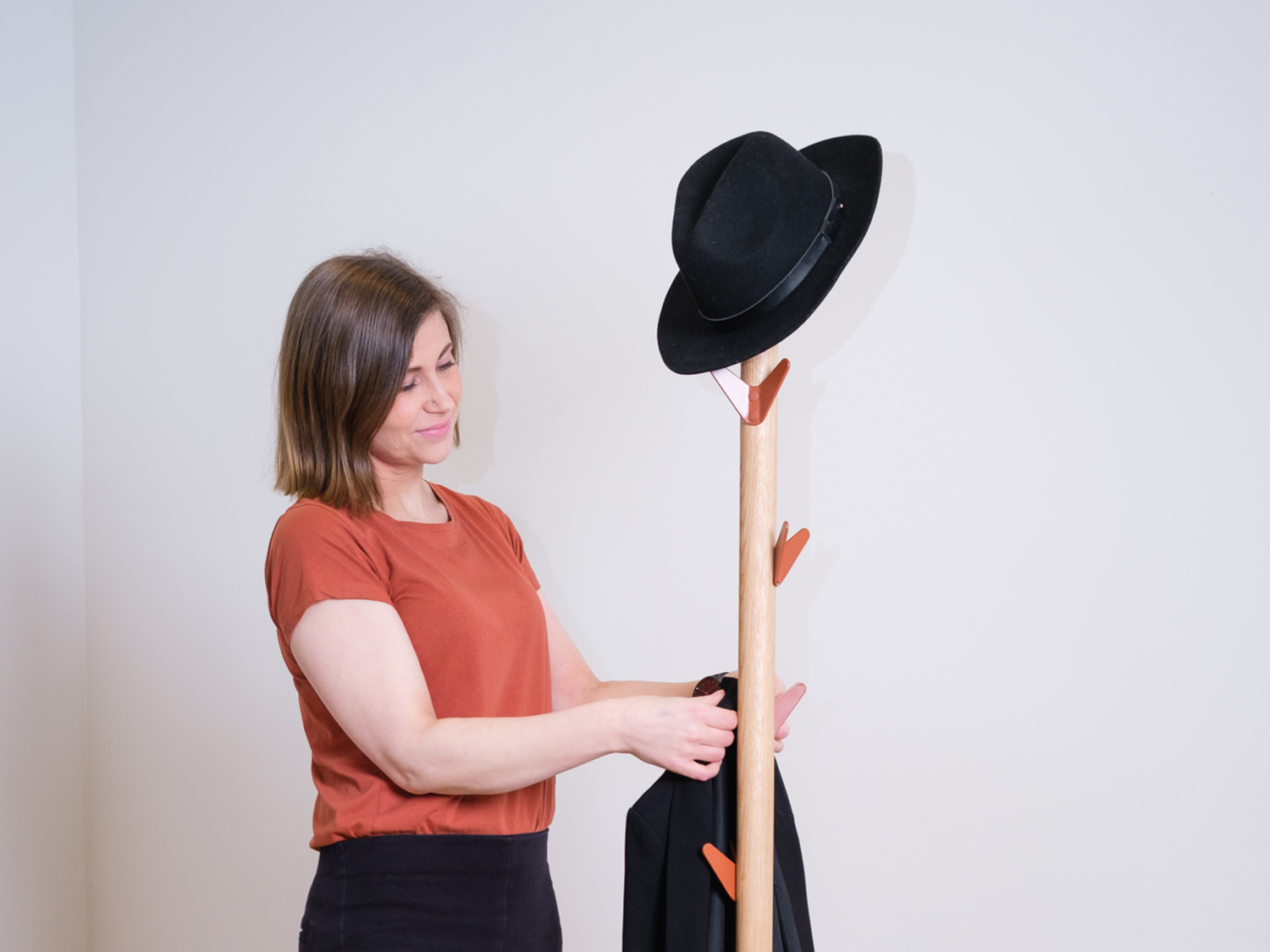 Laske knallisi ja palttoosi päivän päätteeksi eleganttiin mutta hauskaan Bumerangi-naulakkoon!