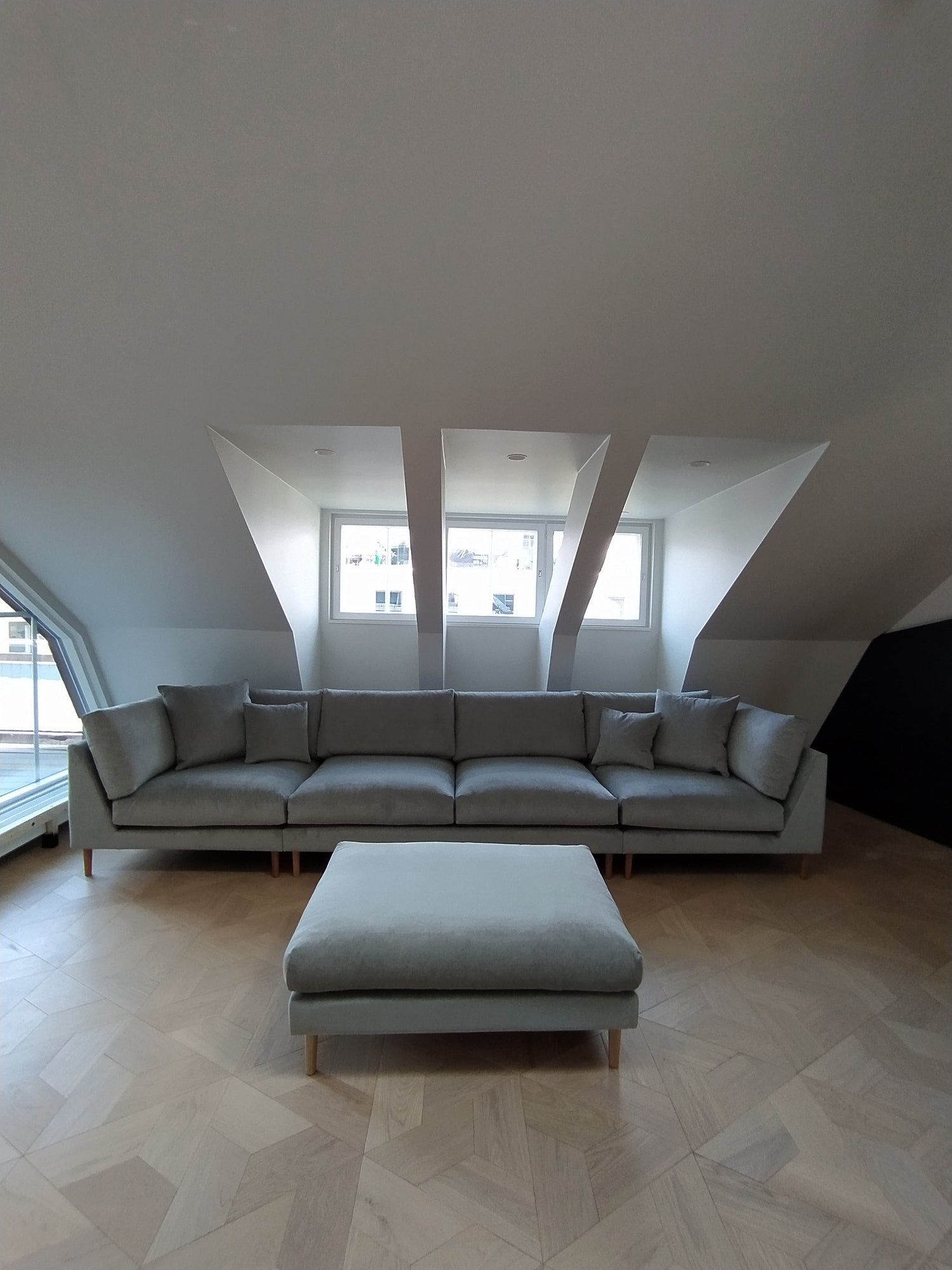 Lounge-sohvalle mahtuu perheen tai kaveriporukan kesken viettämään yhteistä aikaa vaikkapa leffaillan ja popcornien kera.
