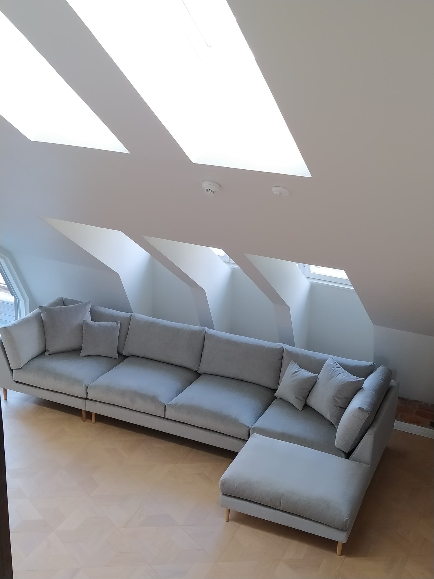 Tervetuloa kotoilun kuninkuusluokkaan! Tässä sohvassa on tilaa nautiskella ja tilaa jää vielä lemmikeille ja sisustustyynyillekin.