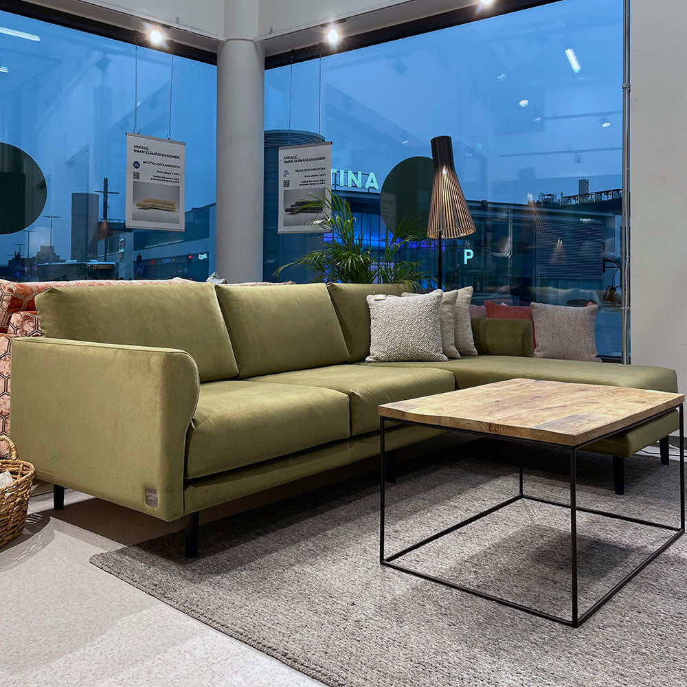 Persoonallinen ja moderni Muotka on hurmaava malli! Kevyt alarunko ja virtaviivainen tyynymalli tekevät sohvasta sopivan trendikkään. Muotkan saa myös suorilla käsinojilla, jos kurvit eivät ole mieluisat.