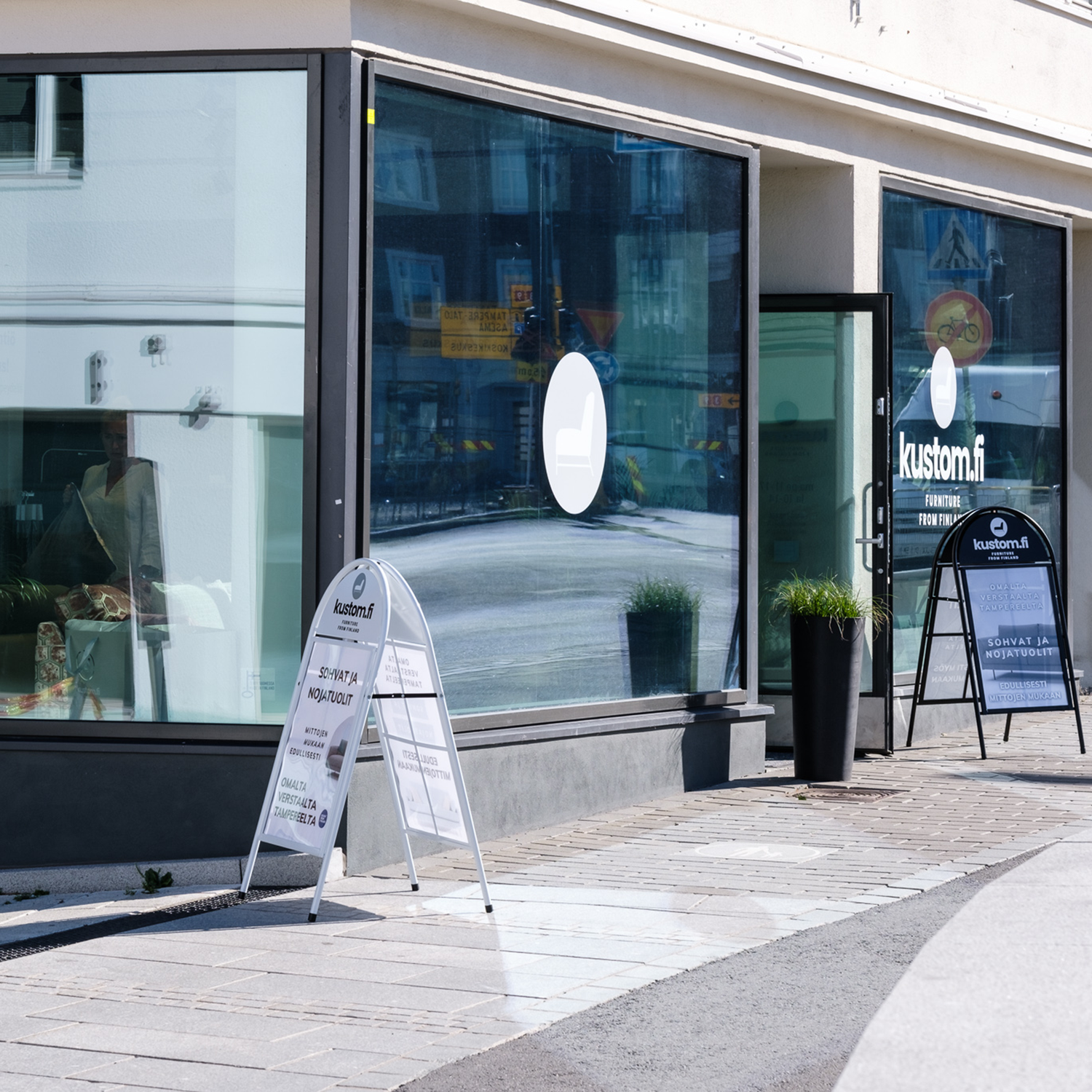 Varmista, että uusi sohva mahtuu sisään ulko-ovesta, väliovista ja porraskäytävästä. Haasteeksi muodostuu useimmiten pituus. Sohva kannetaan useimmiten "selällään", jolloin se on kapeampi. Selkä- ja istuintyynyt sekä jalat voidaan irrottaa asuntoon kuljetuksen ajaksi. Kuljetusasennossa ilman jalkoja ja tyynyjä Kustomin sohvat ovat pääsääntöisesti 55 cm leveitä. Jos epäröit asian kanssa, ota yhteyttä asiakaspalveluumme. Voimme kuljettaa sohvan paikalle myös osissa ja tehdä kasauksen paikan päällä.