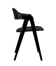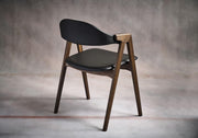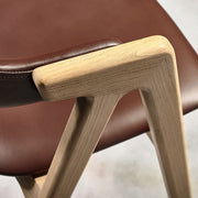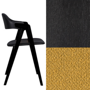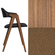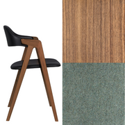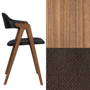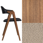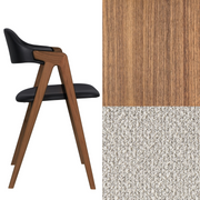 Ruokapöydän tuoli. Massiivipuutuoli verhoillulla istuimella ja selkänojalla.