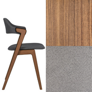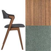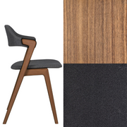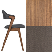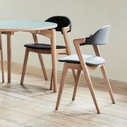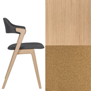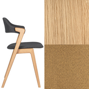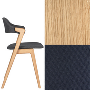 Ruokapöydän tuoli. Massiivipuutuoli verhoillulla istuimella ja selkänojalla.